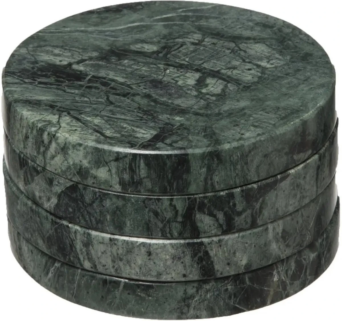 Set Van 8x Ronde Onderzetters Voor Glazen D10 Cm Groen Marmer
