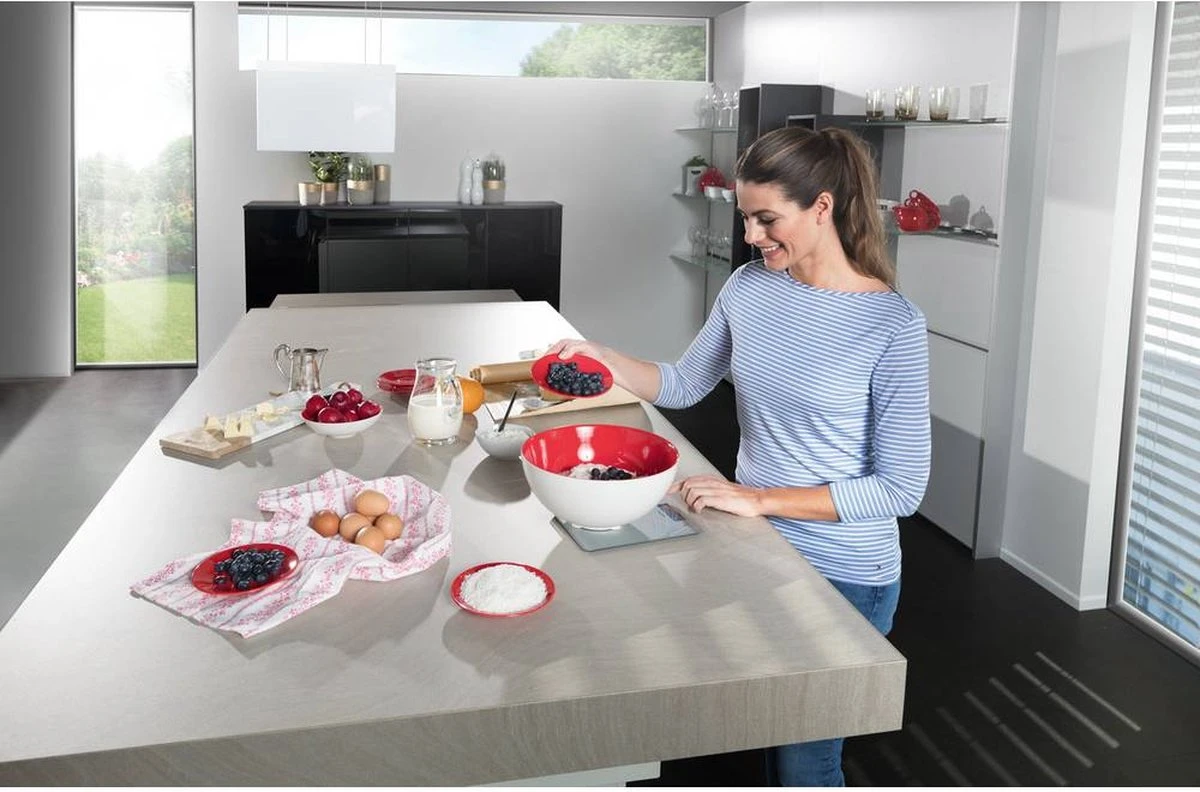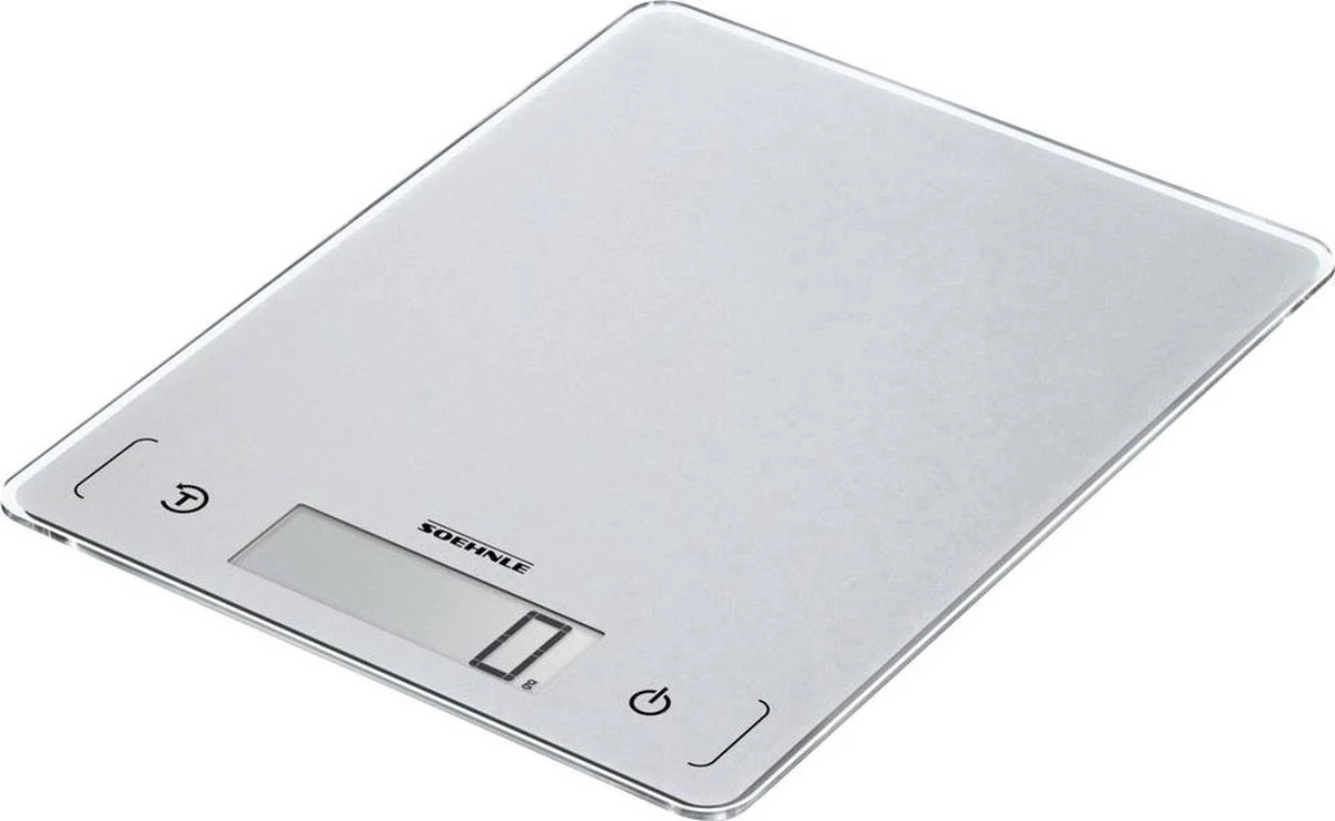 Een highlight in je keuken! Keukenweegschaal Page Comfort 300 Slim met ultraslank en vlak design past in iedere la en iedere kast. Deze chique weegschaal heeft een extragroot lcd-display waarop het gewicht tot maximaal 10 kg aangegeven wordt in precieze 1-gram-stappen. Ingewikkelde recepten met veel ingrediënten zijn met deze weegschaal geen probleem. Met de bijweegfunctie (tarra) kun je ieder volgend ingrediënt gemakkelijk toevoegen en afwegen. Superhandig: met gepatenteerde sensor-touch en groot weegplateau, waarop ook grote schalen en pannen met veel ingrediënten gemakkelijk neergezet kunnen worden. Ook heeft de Page Comfort 300 Slim een automatische uitschakelfunctie. Hoeft er niet gewogen te worden, dan gaat de weegschaal vanzelf uit. Dat bespaart energie en bovendien gaan de batterijen zo heel lang mee. Ook aan de kleintjes is gedacht: het batterijvak is stevig dichtgeschroefd, wat de weegschaal bijzonder kindveilig maakt.
