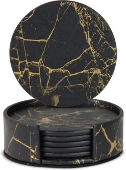 Excellent Houseware 12x Onderzetters Goud RVS Rond Met Houder 8,5 Cm Voor Glazen/bekers/kopjes