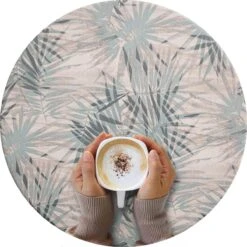 Merkloos Rond Tafelzeil – Ø 140 Cm – Tropische Bladeren – Grijsblauw
