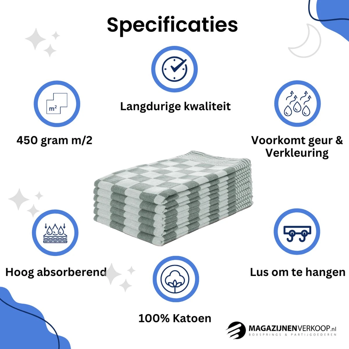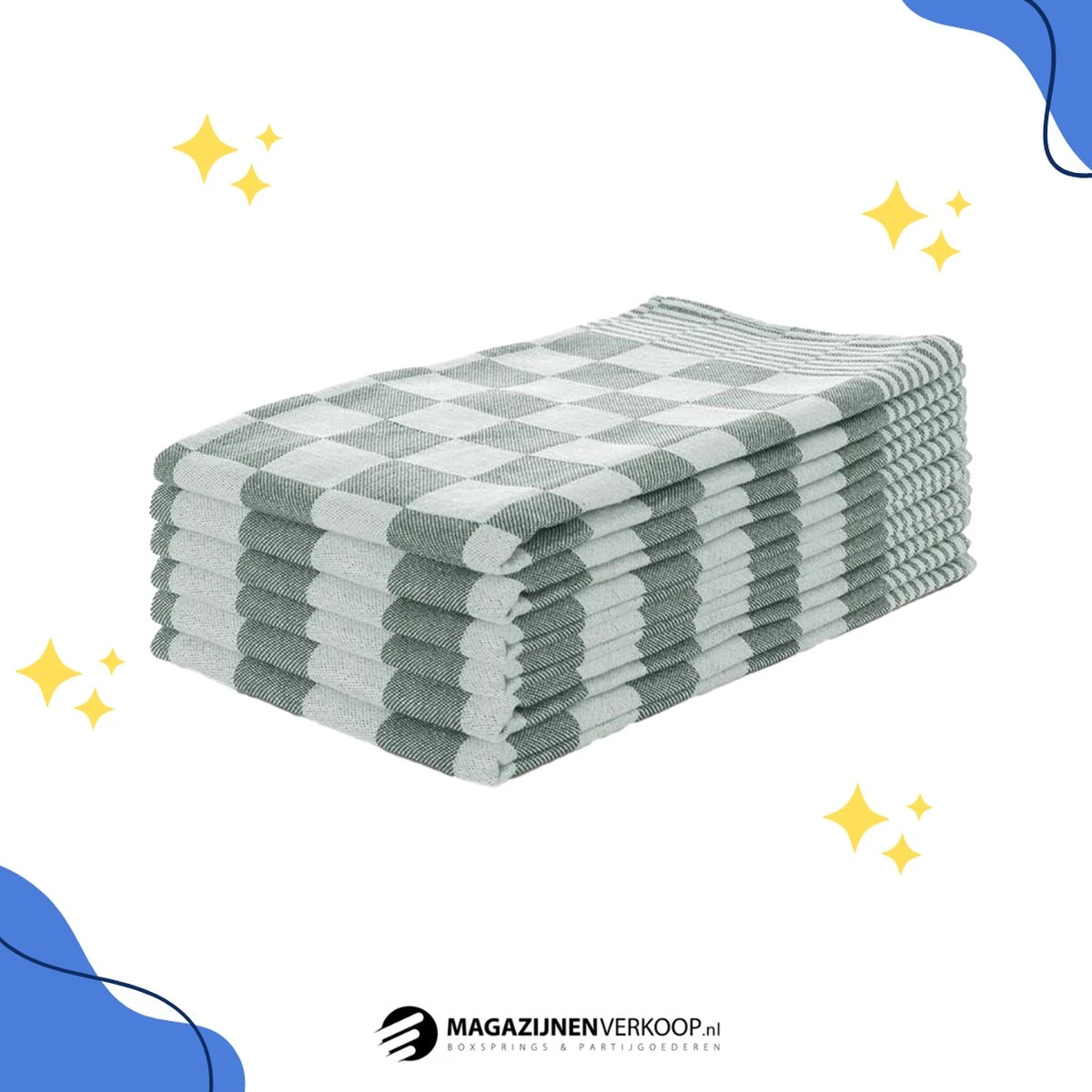 Theedoeken – Horeca Kwaliteit – Katoenenen Theedoeken Set – 12 X – Groen Wit – Ophang Lus