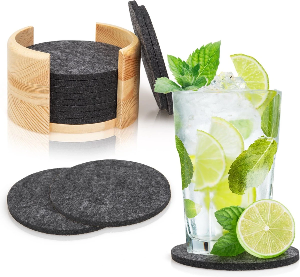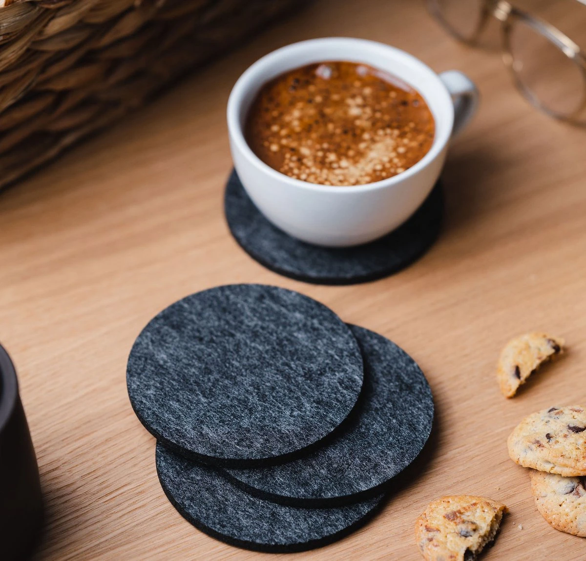Vilt heeft namelijk een absorberende werking, erg handig als de onderkant van je drinken vochtig is. De onderzetters zijn gemaakt van premium kwaliteit vilt, hierdoor zullen de vilten onderzetters hun kwaliteit behouden. De kwaliteit en stevigheid van de onderzetters staat garant voor een lange levensduur. Dit nieuwe model beschikt nu over 10 vilten onderzetters, zo heb je er altijd voldoende als er visite langskomt!