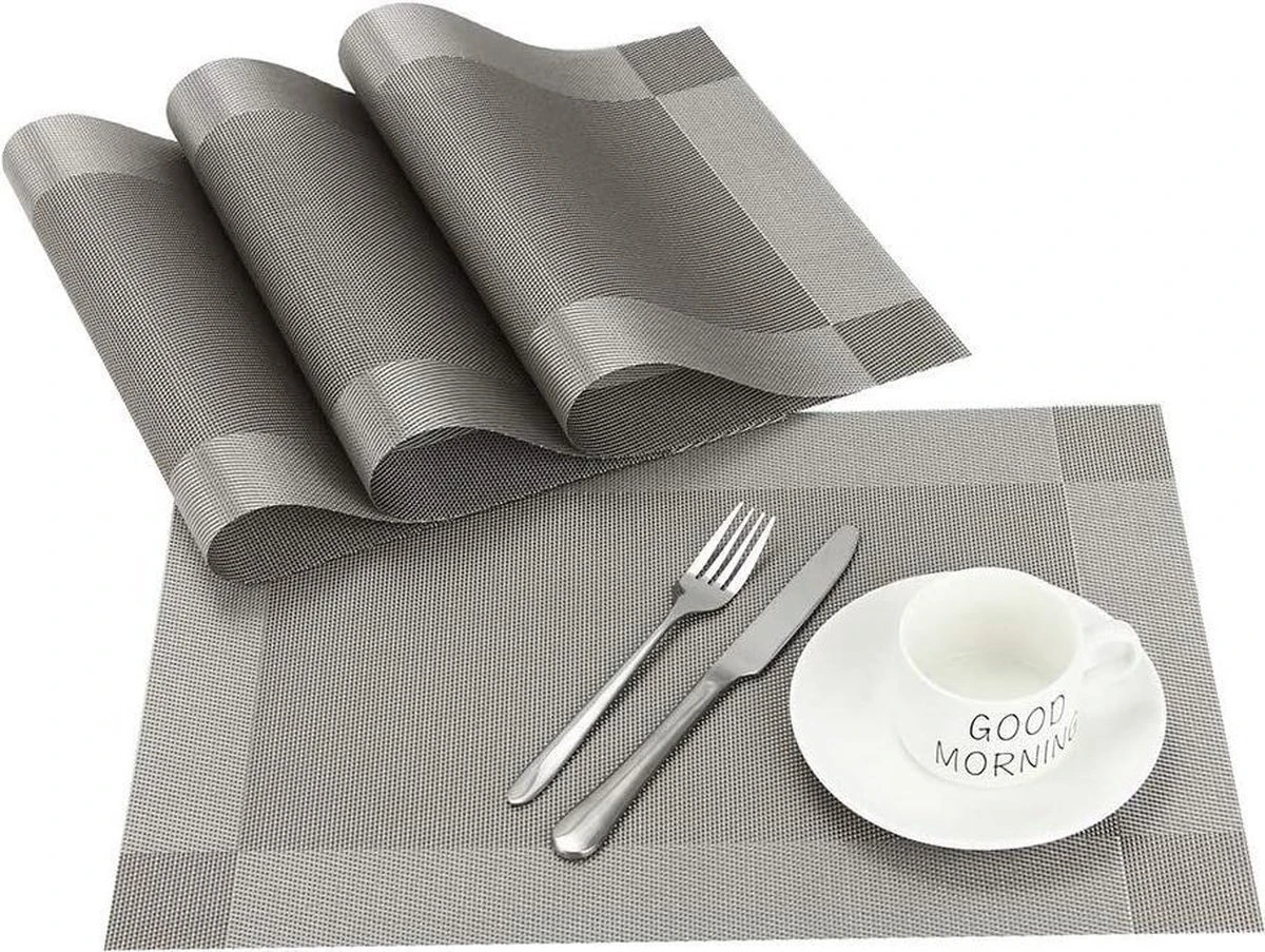Deze mooie glimmende placemats (4 stuks) voegen meer sfeer toe aan je eettafel en beschermen je tafel tegen hitte, krassen en vlekken. De placemats zijn gemaakt van hoogwaardige en milieuvriendelijke PVC kunsstof en polyestervezels met een lange levensduur. De kleur zal niet vervagen na verloop van tijd.