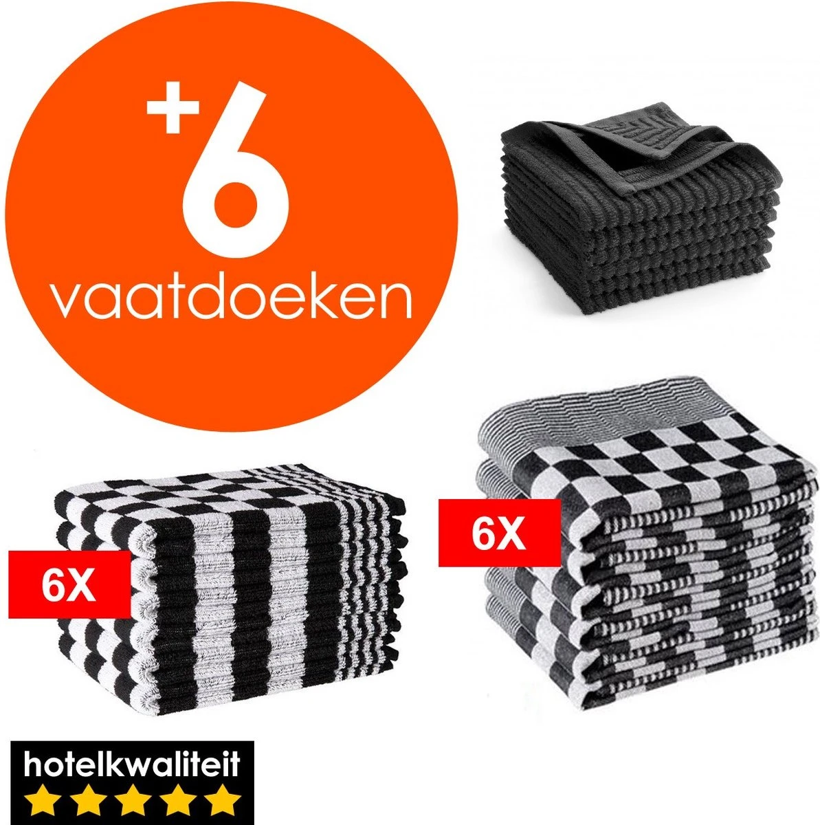 Zavelo 6x Theedoeken En 6x Keukendoeken Set + 6x VAATDOEKJES – 6x Theedoeken – 6x Keukendoeken – Zwart
